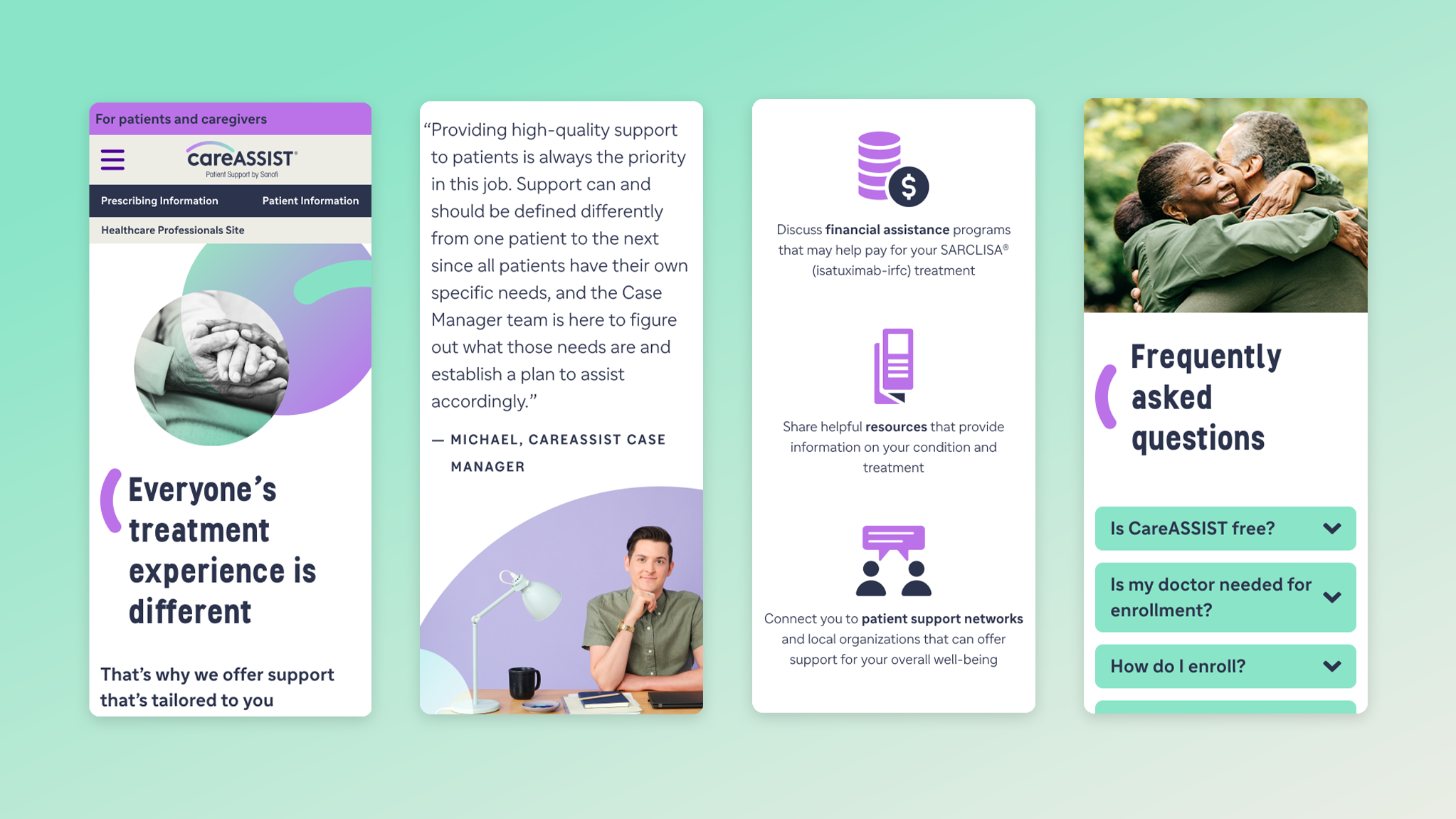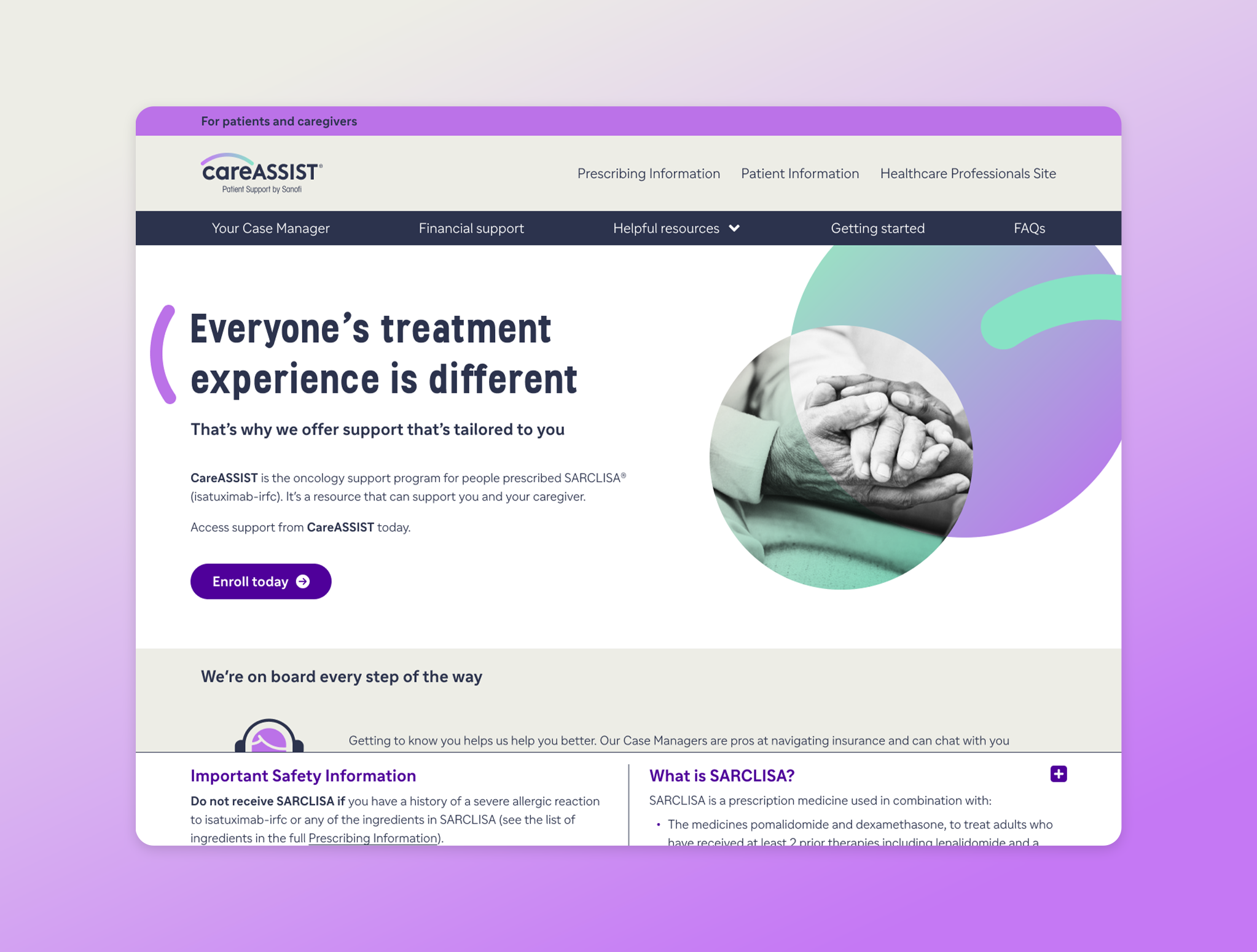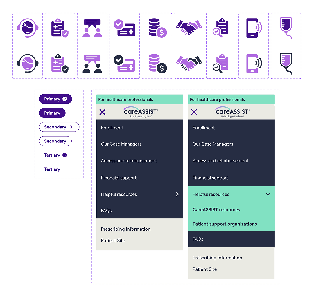 I created the look+feel and established initial layout for patient and HCP websites, developed digital assets, and collaborated with UX designers to establish flow and functionality.