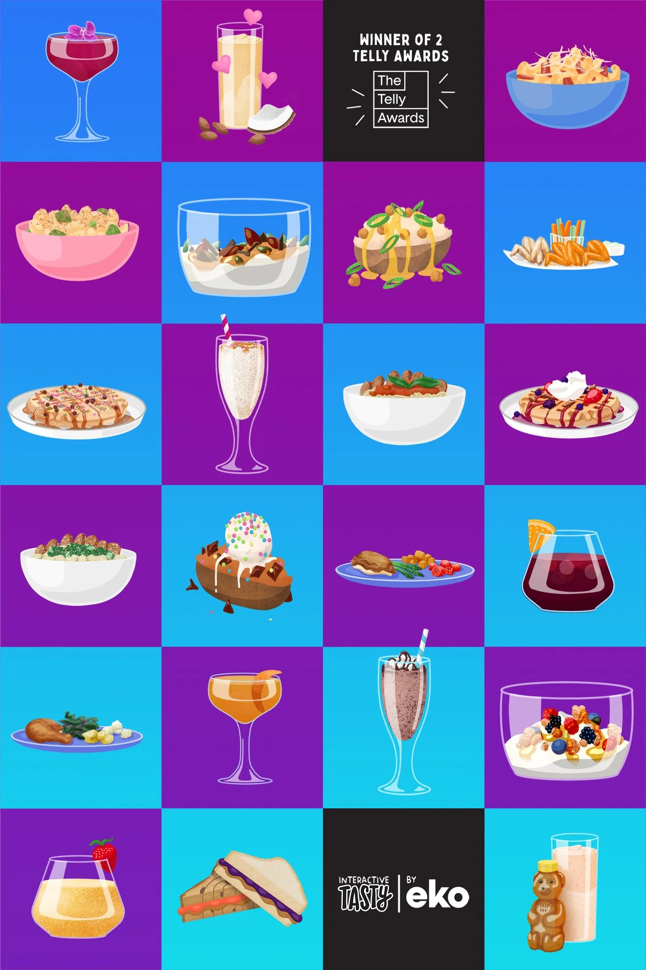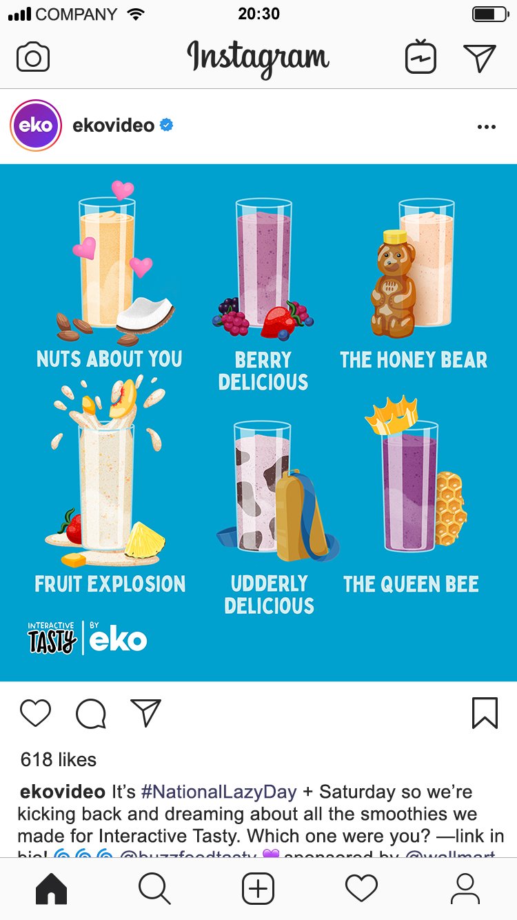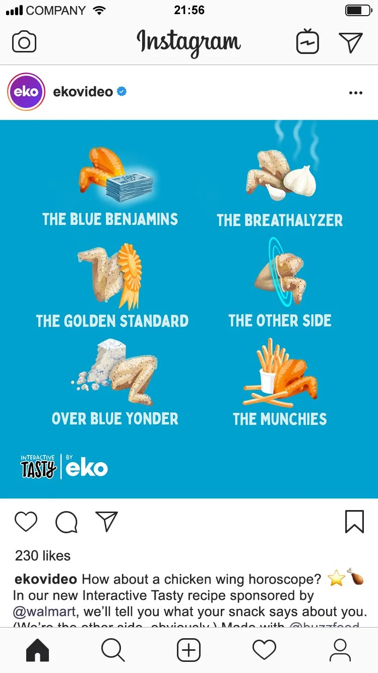 Illustrated social media campaign to promote client eko’s collaboration with BuzzFeed’s Tasty. Assets focused on variety of results possible based on participant’s choices during interactive recipe video.